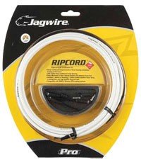 Jagwire Ripcord Brake Kits - Legendary performance and compression-free, flagship housing, dramatically improves braking power for mechanical disc or V-type brake systems, 30% lighter than traditional brake housing and easy to install, will deliver miles of smooth, precise and powerful performance, 5x3000mm Kevlar reinforced compressionless Ripcord housing w/ L3 liner, Teflon coated slick stainless inners 1350/2350mm, mountain ends only, 2 lined ferrules, 2 nosed ferrules, 2 POP ferrules, 3 cable donuts, 2 cable tips and 650mm of sealing liner, White, set