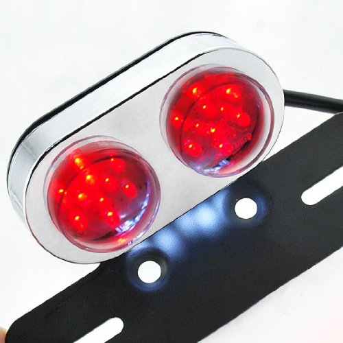 Red Dual Round Brake Light Motorbike Number License Plate 12V LED White Frame Integrated Bracket Review